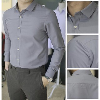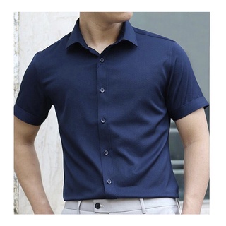 Áo sơ mi nam ngắn tay vải cotton lụa trơn mát chống nhăn chống xù dáng Hàn Quốc
