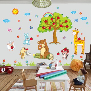 Tranh decal dán tường ĐỘNG VẬT VÀ CÂY TÁO cho bé - Giấy dán tường