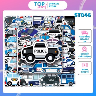 Sticker cute SET 50 TẤM xe cảnh sát, hình dán mũ bảo hiểm, trang trí sổ, dán xe, laptop, chống thấm nước - TOP TREND