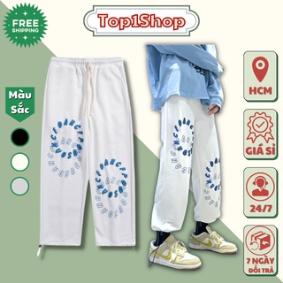 Quần jogger ống rộng bo gấu dáng thể thao suông nam nữ nỉ cao cấp bigsize thu đông basic Top1shop