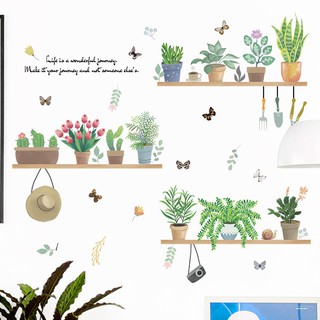 Tranh decal dán tường KỆ CÂY VÀ BƯỚM - Decal dán tường