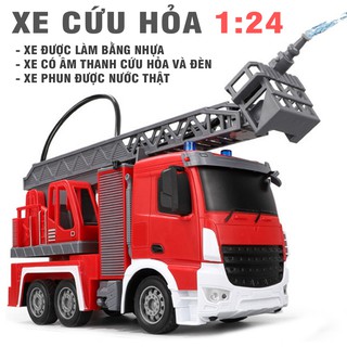 Xe cứu hỏa đồ chơi trẻ em mô hình 1:24 bằng nhựa phun được nước thật có âm thanh và đèn