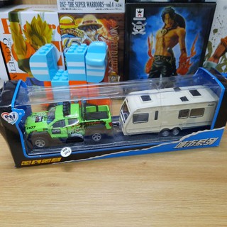 Đồ chơi trẻ em bộ xe ô tô mini kéo thuyền (hoặc nhà di động) xe có đèn âm thanh mở được cửa