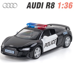 Xe ô tô cảnh sát Audi R8 Coupe đồ chơi trẻ em mô hình tỉ lệ 1:36 bằng kim loại mở được 2 cửa trước