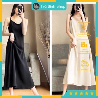 Váy 2 Dây Đầm Suông Chất Đũi Lụa Trơn Dáng Basic Nữ