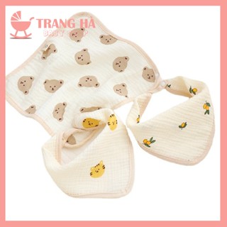 Khăn Yếm Cotton Có Cúc Bấm Mềm Mại Họa Kiểu Dánh Hàn Quốc Cho Bé Từ 0 Tháng Tuổi