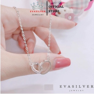 Dây chuyền bạc nữ Evasilver, mặt 2 hình tròn lồng nhau, Vòng cổ chất liệu bạc ta sang trọng