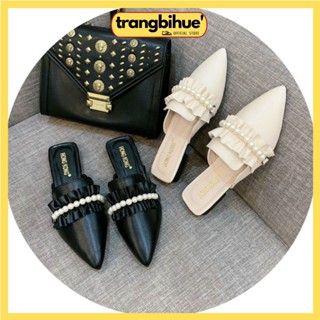 Giày sục hở gót quai ngang Mary Vá Mũi đen đế bệt êm ái