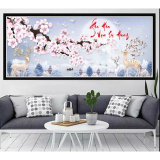 tranh thêu hươu nai tài lộc ( thêu kín ) MHH0834 (149*66)