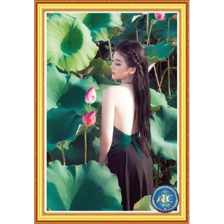 TRANH ĐÍNH ĐÁ THIẾU NỮ BÊN ĐẦM SEN VS163 (76X53)