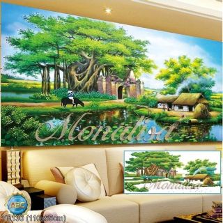 Tranh đính đá phong cảnh làng quê y8130(110×55) y8131 y8132