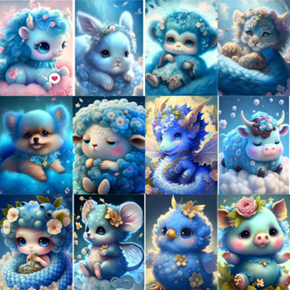 Bộ tranh đính đá 5D tự làm họa tiết hình 12 con giáp 4 size 30*40cm
