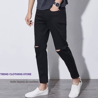 Quần Jeans Nam, Mẫu Jeans Đen Rách 2 Gối Hot Hit 2022-Trend Clothing_Store!