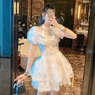 Đầm trắng tay phồng cổ vest kiểu Pháp thời trang hè 2022 mới cho nữ