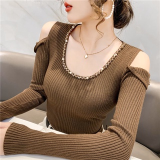 Áo Len Tay Dài Hở Vai Phong Cách Mới Dành Cho Nữ