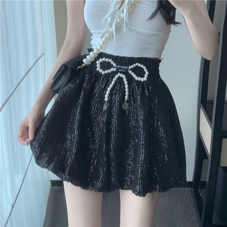 Quần Short Ống Rộng Lưng Cao Thêu Họa Tiết Đính Kim Sa Hợp Thời Trang
