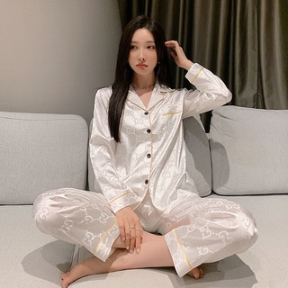 Bộ đồ ngủ tay dài chất lụa mỏng nhẹ thời trang xuân thu xinh xắn cho nữ
