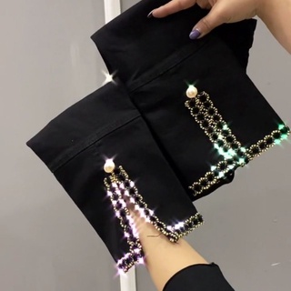 Quần jean dài 9 tấc xẻ tà lưng cao thời trang mùa xuân 2022 tùy chọn màu sắc dành cho nữ