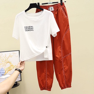 Set Đồ Thể Thao Gồm Áo Tay Ngắn Dáng Rộng + Quần Dài Có Size Lớn 100kg Dành Cho Nữ