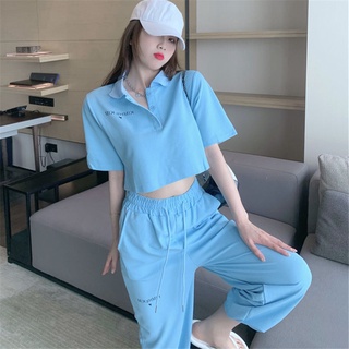 Bộ áo khoác tay ngắn và quần dài thể thao thời trang mùa hè cho nữ 2021