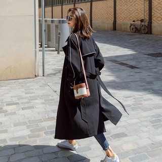 [free gift] Áo khoác gió dáng rộng màu đen thời trang thu đông phong cách Hàn Quốc cho nữ