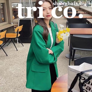 Áo Khoác Vest Dáng Rộng Màu Xanh Lá Thời Trang Xuân Thu Cao Cấp Dễ Phối Đồ Cho Nữ