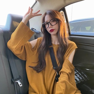 Áo thun dài tay hở vai dáng rộng thời trang xuân thu kiểu Hàn Quốc trẻ trung 2021 cho nữ