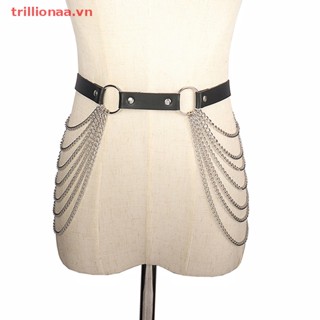 Thắt Lưng Da Màu Đen Phối Dây Xích Phong Cách Goth Gợi Cảm