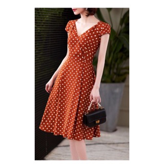 Đầm xoè công sở lụa chấm bi cổ V TRIPBLE T DRESS -size M/L/XL (kèm ảnh/video thật) MS3MT