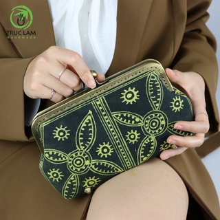 Ví Dài Nữ Cầm Tay Clutch Thời Trang Trúc Lâm Handmade TCNĐ15 Vải Thổ Cẩm Dáng Cổ Điển Khóa Kisslock Đồng Cao Cấp