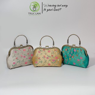 Túi Xách Tay Túi Đeo Vai Thời Trang Nữ Vải Tafta Khóa Nẹp Đồng Thêu Hoa Thủ Công - Trúc Lâm Handmade