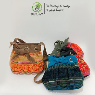 Túi Đeo Chéo Thời Trang Nữ Vải Thổ Cẩm Phối Da Lộn Miệng Dây Rút Thắt Nơ - Trúc Lâm Handmade