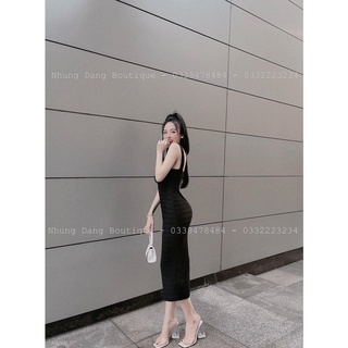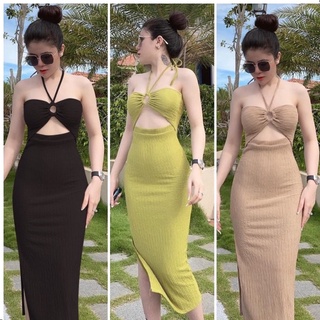 Đầm Body Dáng Dài Cổ Khoét Cách Điệu Tăm Lạnh
