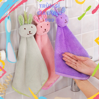 Khăn lau tay hình thỏ nhiều màu có móc treo, khăn lau tay, chén dĩa vải cotton thấm hút nước tốt