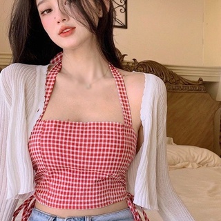 Áo yếm caro rút dây 2 bên kèm mod ngực