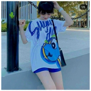 Sét bộ quần đùi & áo thun phôm rộng phối hình dễ thương (PC)