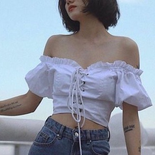 Áo bẹt vai đan dây croptop vải kate nhật siêu đẹpp