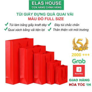 Túi giấy đựng quà kraft quai vải màu đỏ thích hợp đựng qua ngày lễ tết