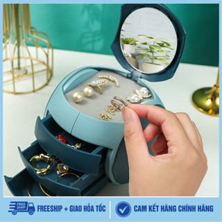 Hộp đựng trang sức mini 6 ngănTuệ Minh kèm gương mang đi mọi nơi 3 ngăn kéo tiện nơi để mang đi du lịch