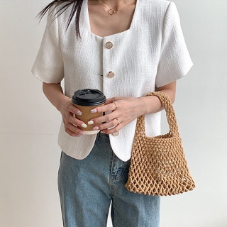 Túi xách nữ đeo chéo cói hàn quốc quai gỗ tròn