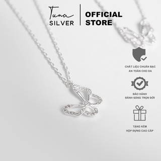 Dây chuyền bạc nữ 2 tầng hồ điệp, Vòng cổ Bạc gắn đá cao cấp TUNA SILVER 𝐂𝐚𝐦 𝐤𝐞̂́𝐭 𝐜𝐡𝐮𝐚̂̉𝐧 𝐁𝐚̣𝐜 𝐓𝐔𝐍𝐀𝐒𝐇𝐎𝐏 Trang sức Bạc