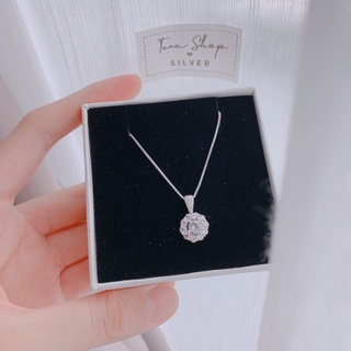 Dây chuyền Bạc mặt tròn lồng bông hoa gắn đá cao cấp, Vòng cổ Bạc nữ đính đá cao cấp TUNASILVER 𝐂𝐚𝐦 𝐤𝐞̂́𝐭 𝐜𝐡𝐮𝐚̂̉𝐧 𝐁𝐚̣𝐜