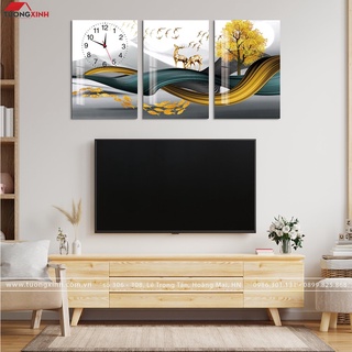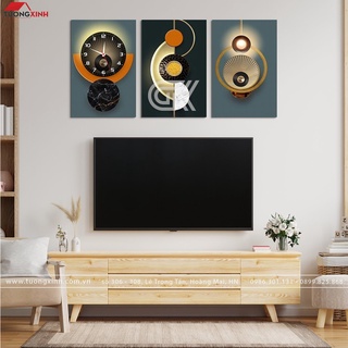 Đồng hồ tranh hiện đại trang trí phòng khách trên kệ tivi DHP41