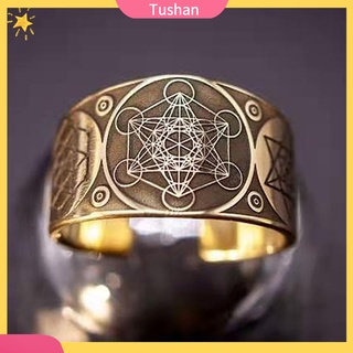 Nhẫn Hợp Kim Họa Tiết Hexagram Cổ Điển Có Thể Điều Chỉnh Phong Cách Punk