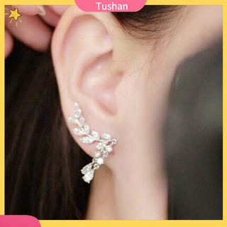 Hoa tai đính đá kiểu hình chiếc lá xinh xắn tiện dụng cho nữ