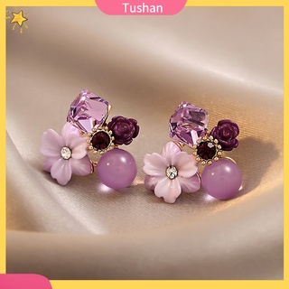 Bông tai hình hoa màu tím phong cách công chúa lãng mạn