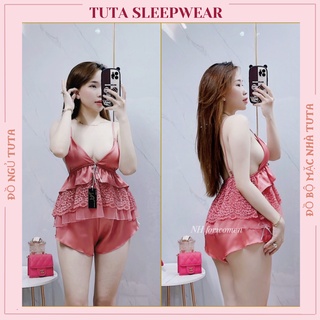 Bộ đồ ngủ nữ 2 dây sexy quần đùi TUTA vải lụa Latin cao cấp mềm nhẹ thoáng mát - dn002