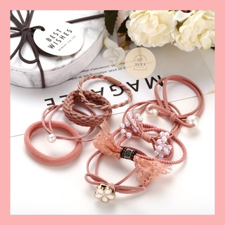 Combo 8 Dây Thun Cột Tóc Hồng, Dây Chun Cột Tóc Phong Cách Hàn Quốc Bánh Bèo Dễ Thương