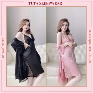 Đầm ngủ nữ 2 dây sexy TUTA phối ren hoa nổi chất lụa satin cao cấp (Tặng kèm quần ngủ lụa) - dn024