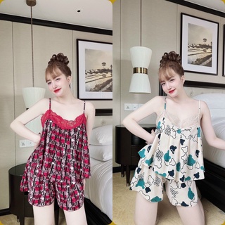 Đồ bộ mặc nhà dễ thương bộ ngủ lụa 2 dây quần đùi chất liệu mềm mượt thoáng mát.